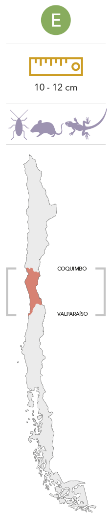 Hábitat y Ecología:Construye su madriguera bajo tierra, pero también puede ser encontrada bajo rocas o en oquedades naturales del terreno. Debido a que se distribuye a lo largo de diversos tipos de formaciones vegetacionales, es que puede estar asociada tanto Al matorral esclerófilo o terrenos cubiertos con herbáceas.